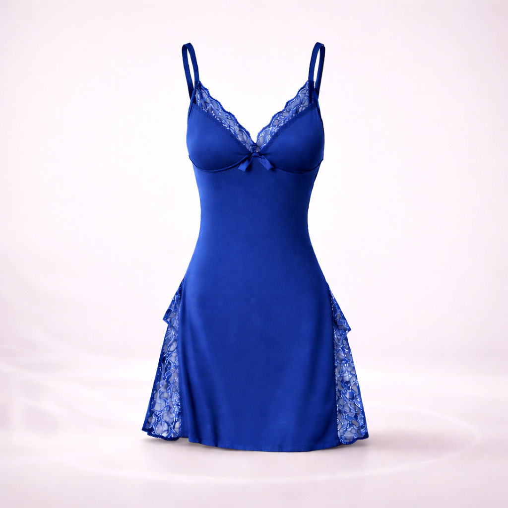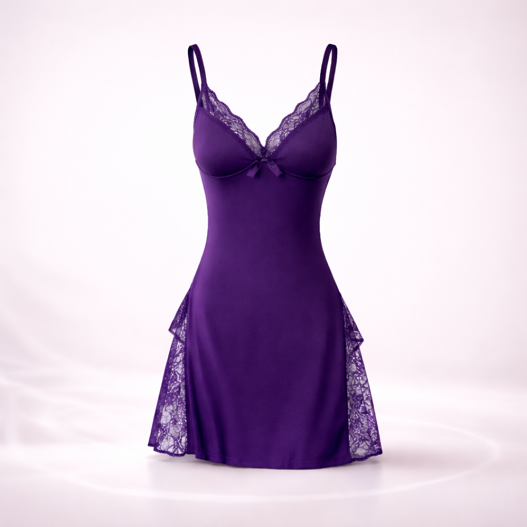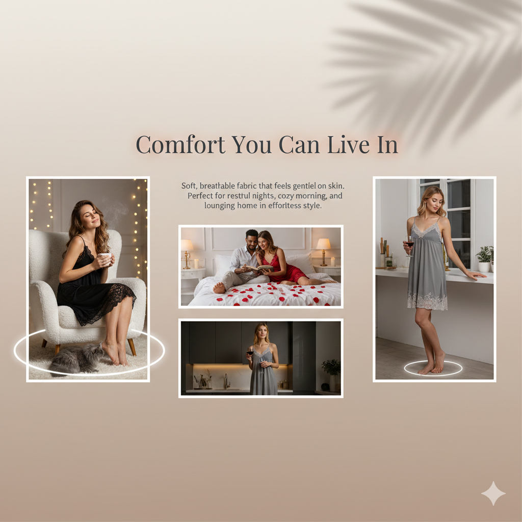 The delicate fabric brushed gently against her skin as she moved closer, the side slit revealing just enough to make the moment linger. Comfortable enough to lounge… bold enough to be remembered.